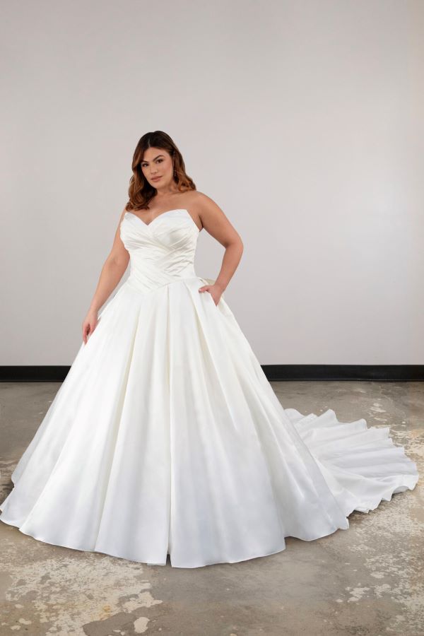 From minimalist crepe dresses to dramatic ballgowns and detachable overskirts, Essense of Australia offers versatility for every bridal vision. Brides can expect thoughtful features like corsetry support, customizable options, and inclusive sizing to ensure a flawless fit and feel.