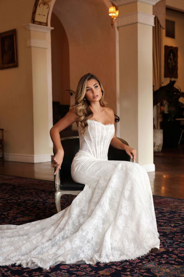 From minimalist crepe dresses to dramatic ballgowns and detachable overskirts, Essense of Australia offers versatility for every bridal vision. Brides can expect thoughtful features like corsetry support, customizable options, and inclusive sizing to ensure a flawless fit and feel.