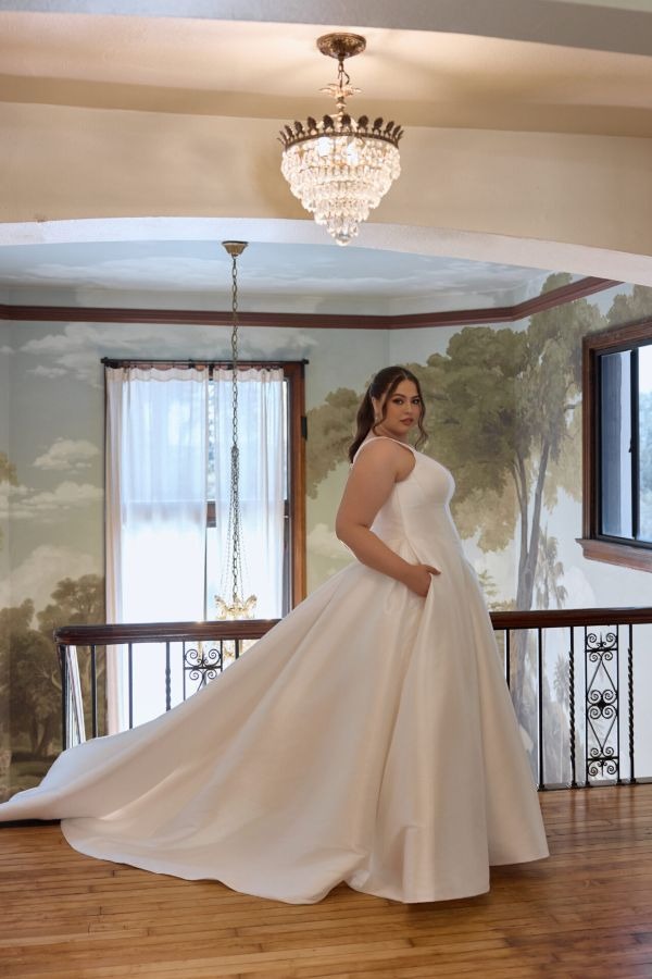 From minimalist crepe dresses to dramatic ballgowns and detachable overskirts, Essense of Australia offers versatility for every bridal vision. Brides can expect thoughtful features like corsetry support, customizable options, and inclusive sizing to ensure a flawless fit and feel.