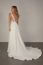 At the back, a striking low V-neckline is delicately trimmed with satin binding, adding a touch of refinement. The sheer tulle side panels provide an ethereal contrast, available in either classic ivory or soft porcelain. For an added element of romance, you can opt for beaded lace detailing along the back seams, gracefully extending toward the front.