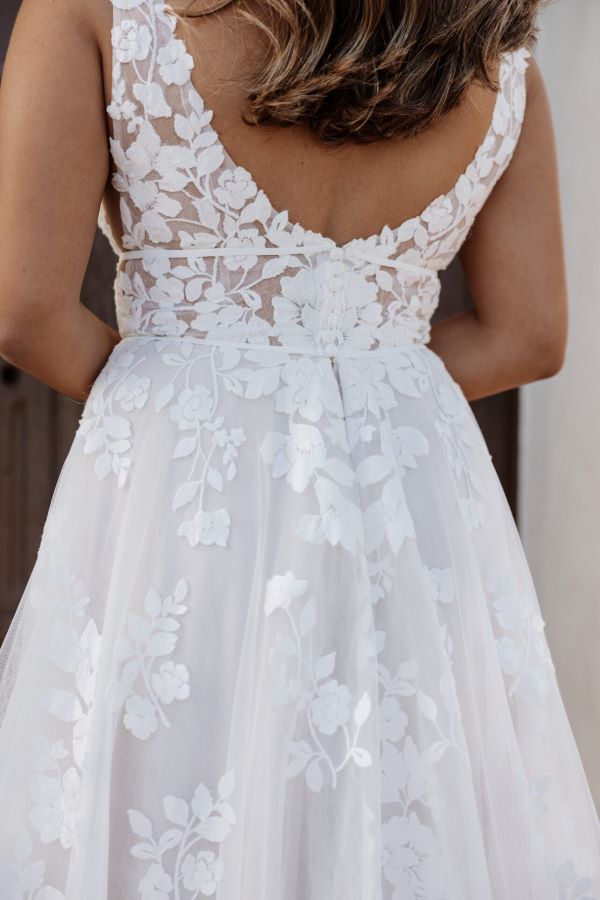 From minimalist crepe dresses to dramatic ballgowns and detachable overskirts, Essense of Australia offers versatility for every bridal vision. Brides can expect thoughtful features like corsetry support, customizable options, and inclusive sizing to ensure a flawless fit and feel.