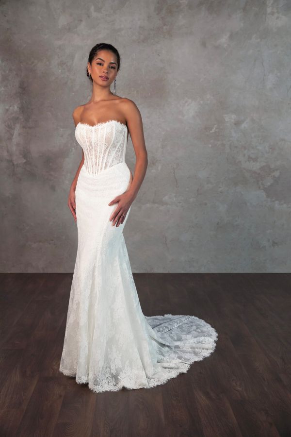 Essense of Australia combines intricate detailing, luxurious fabrics, and superior construction to create wedding gowns that are as unforgettable as the bride wearing them. Known for their flattering silhouettes and refined craftsmanship, each gown is designed with intention—whether it's romantic lacework, structured tailoring, or soft flowing fabrics.