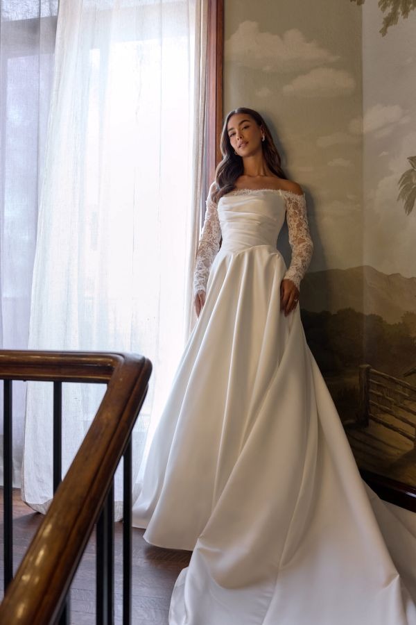 From minimalist crepe dresses to dramatic ballgowns and detachable overskirts, Essense of Australia offers versatility for every bridal vision. Brides can expect thoughtful features like corsetry support, customizable options, and inclusive sizing to ensure a flawless fit and feel.