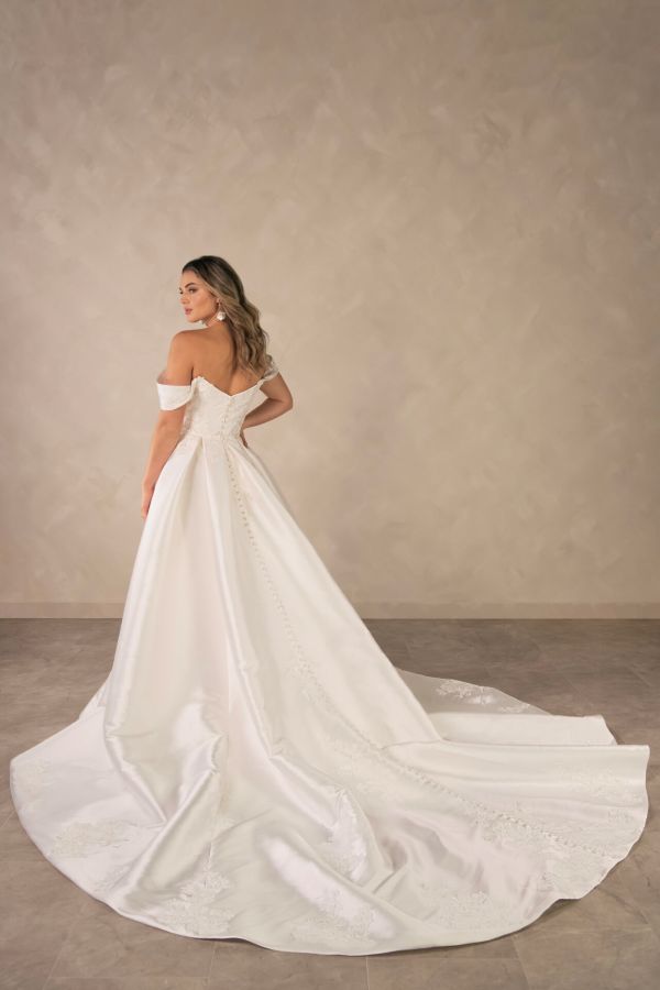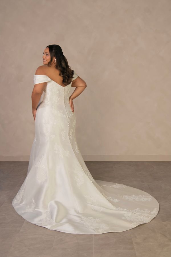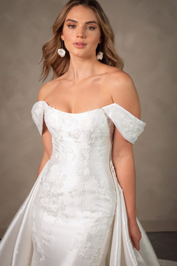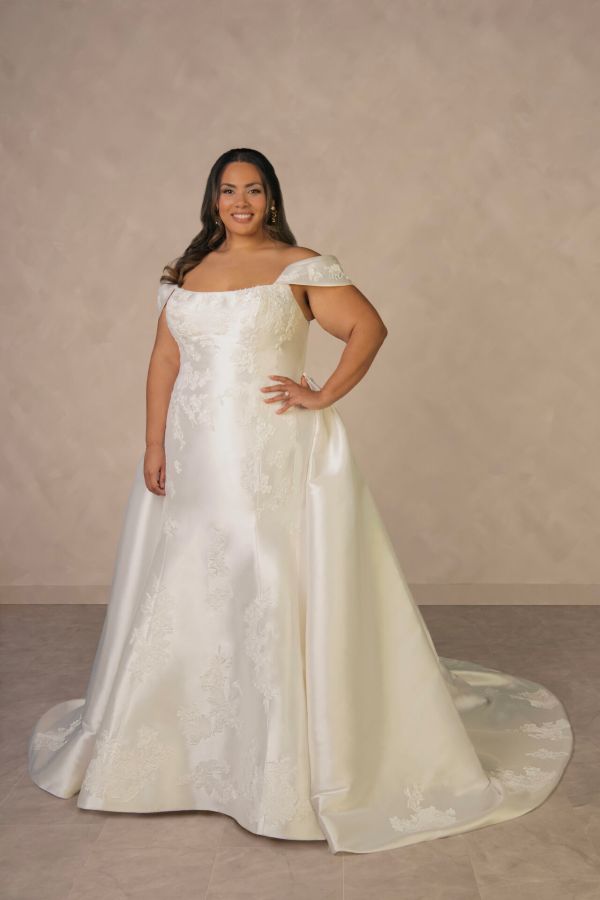 From minimalist crepe dresses to dramatic ballgowns and detachable overskirts, Essense of Australia offers versatility for every bridal vision. Brides can expect thoughtful features like corsetry support, customizable options, and inclusive sizing to ensure a flawless fit and feel.