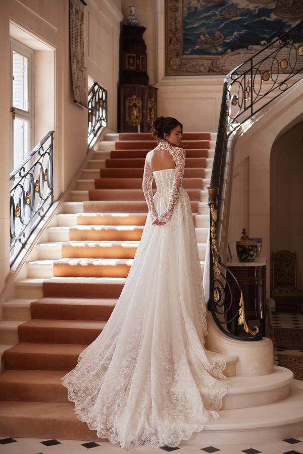 For the daring bride, the bodysuit can even be styled under the full lace overskirt for a bold and unforgettable statement.